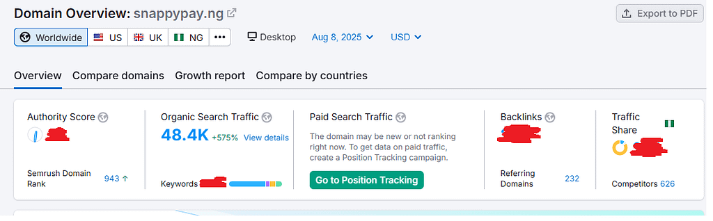 Today, SnappyPay ranks on Google’s first page for hundreds of FinTech-related terms and drives over 48,000 monthly traffic, according to a Semrush report as of the time of writing this case study. Their blog is now a valuable educational hub for digital-savvy Nigerians. (See the image below)